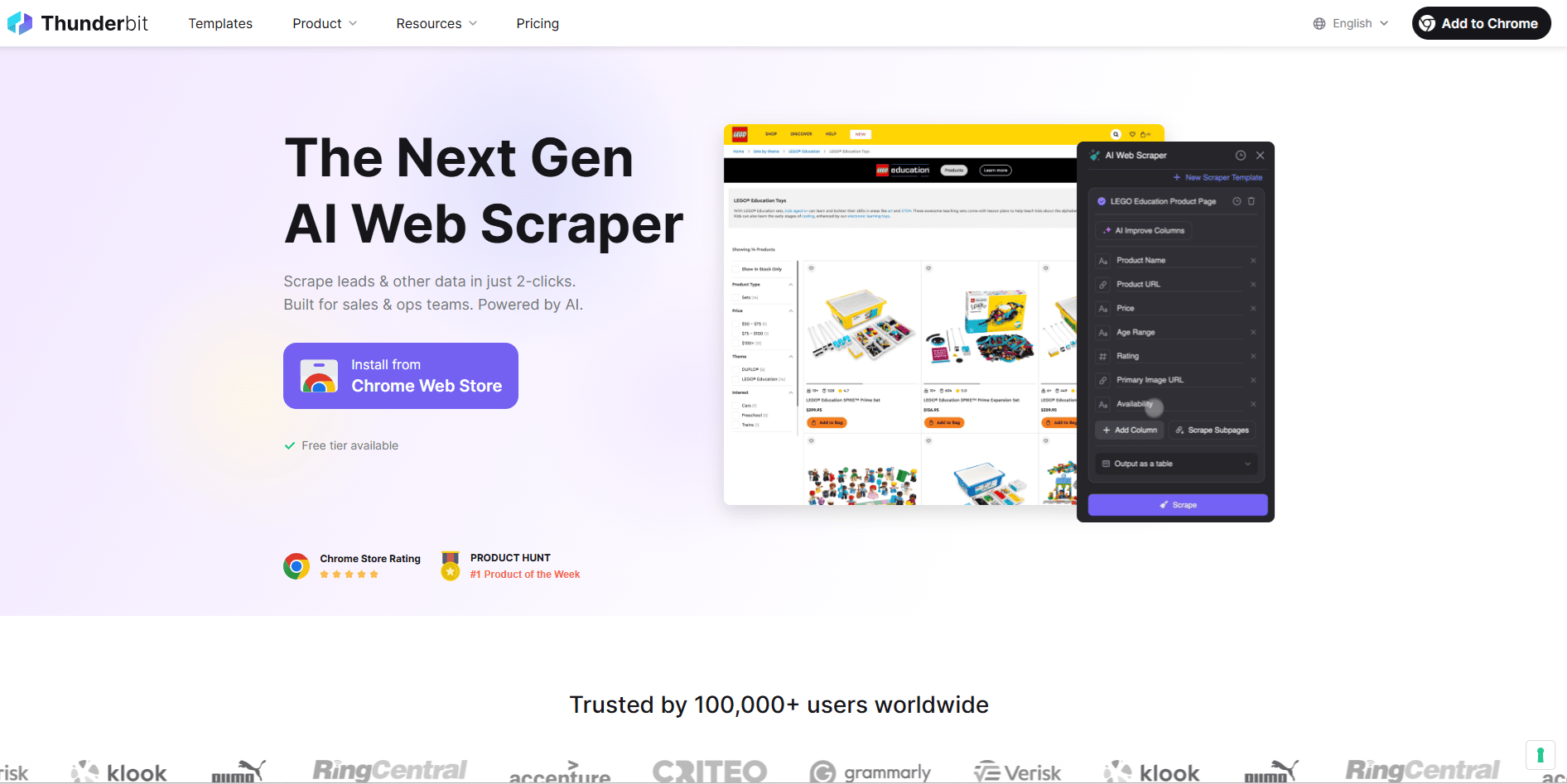 Vas a la Chrome Web Store y añades “Thunderbit: AI Web Scraper & Web Automation Agent”.