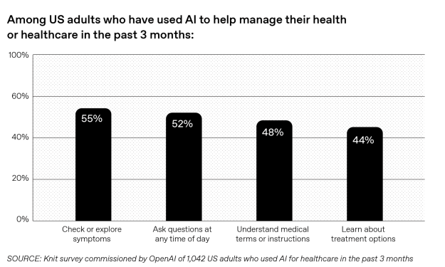 OpenAI presenta esta tendencia como el uso de una herramienta que ayuda a navegar sistemas a menudo complejos y opacos, especialmente en paĂses como Estados Unidos, donde el sistema sanitario es difĂcil de entender.